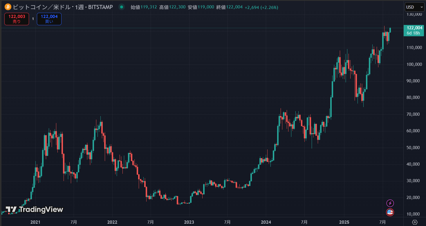 2025年8月現在、ビットコインは円建てで1,700万円、米ドル建てで約12万ドルの過去最高値を更新しています 。これは、2024年12月5日に史上初の10万ドルを突破して以来の大きな節目です 。一時的に下落する場面もありましたが、再び勢いを取り戻し、高値圏を推移しています 。