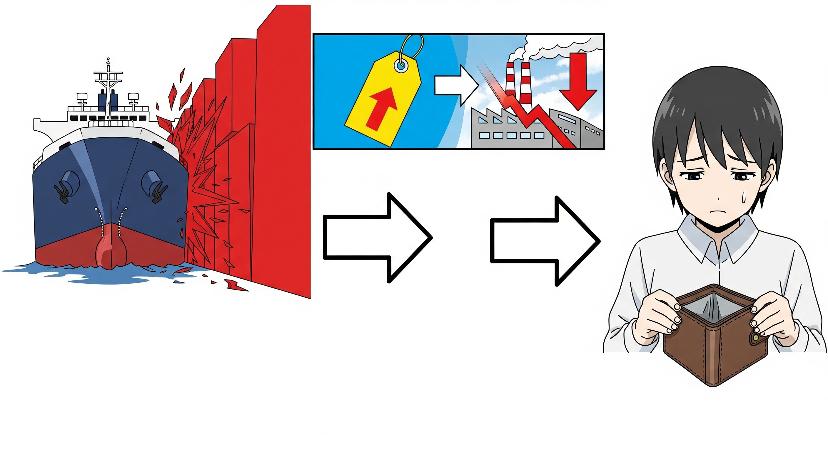 次に、同じ関税という政策が、なぜ景気を悪化させる(停滞させる)力も持っているのかを見ていきましょう。