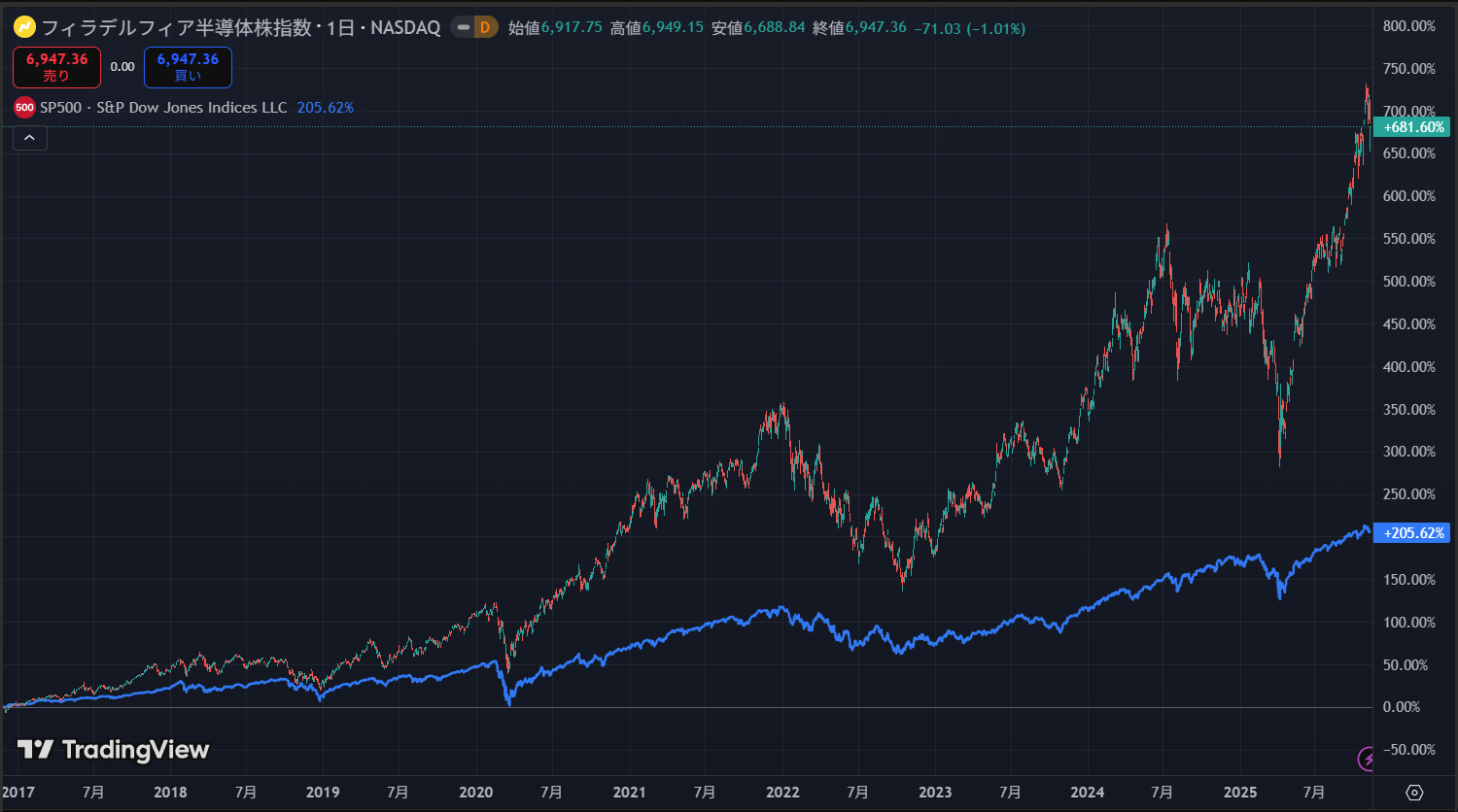【半導体セクターとS&P 500のパフォーマンス比較】