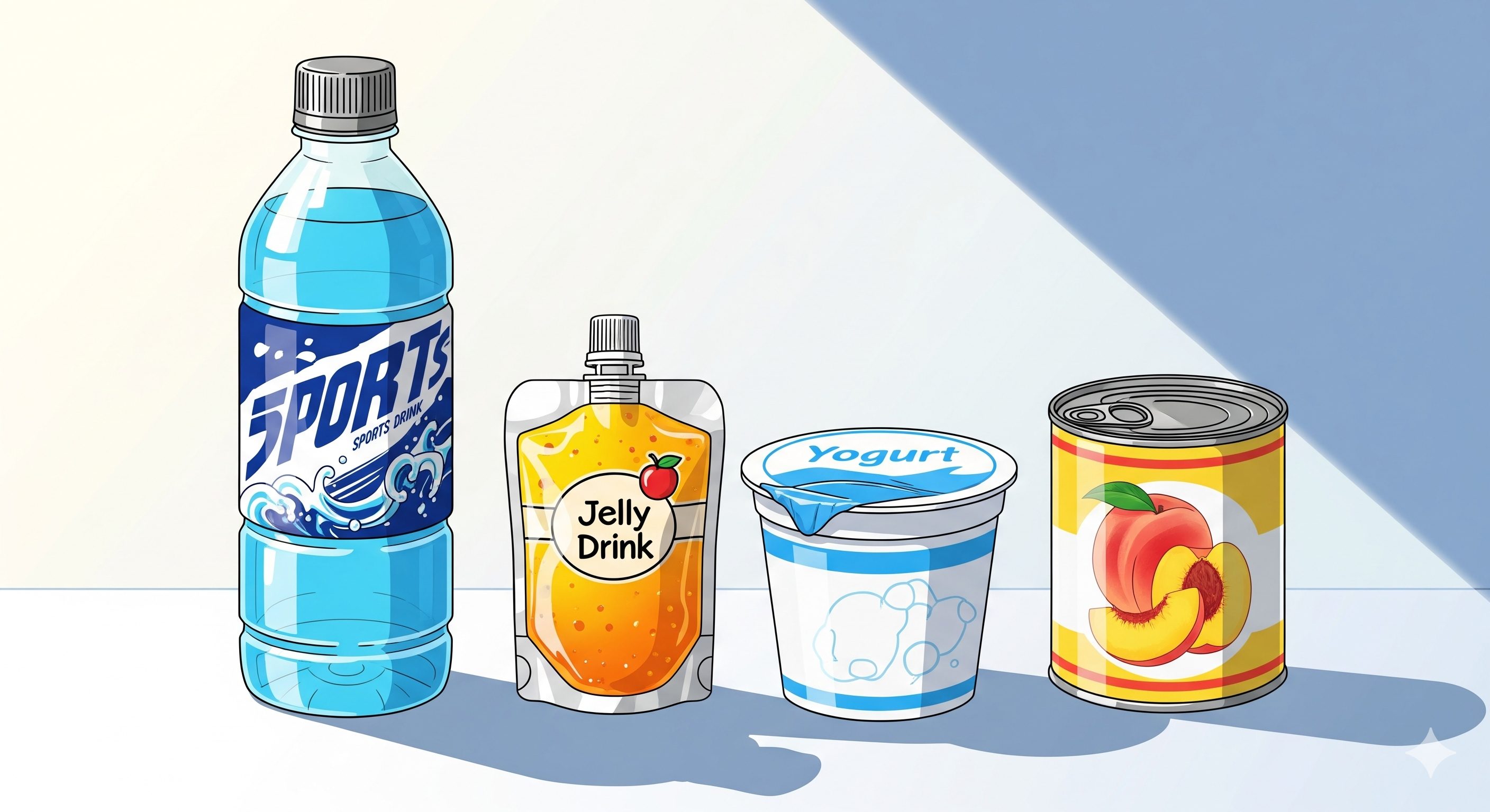 - ゼリー飲料:手軽にエネルギーと水分を補給でき、ビタミンなどが強化されている商品も多いのでおすすめです 。